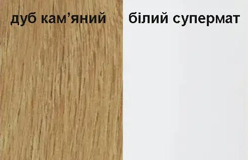 - Корпус: ДСП товщиною 16 мм і 22 мм в кольорі німфея альба і дуб кам'яний.
