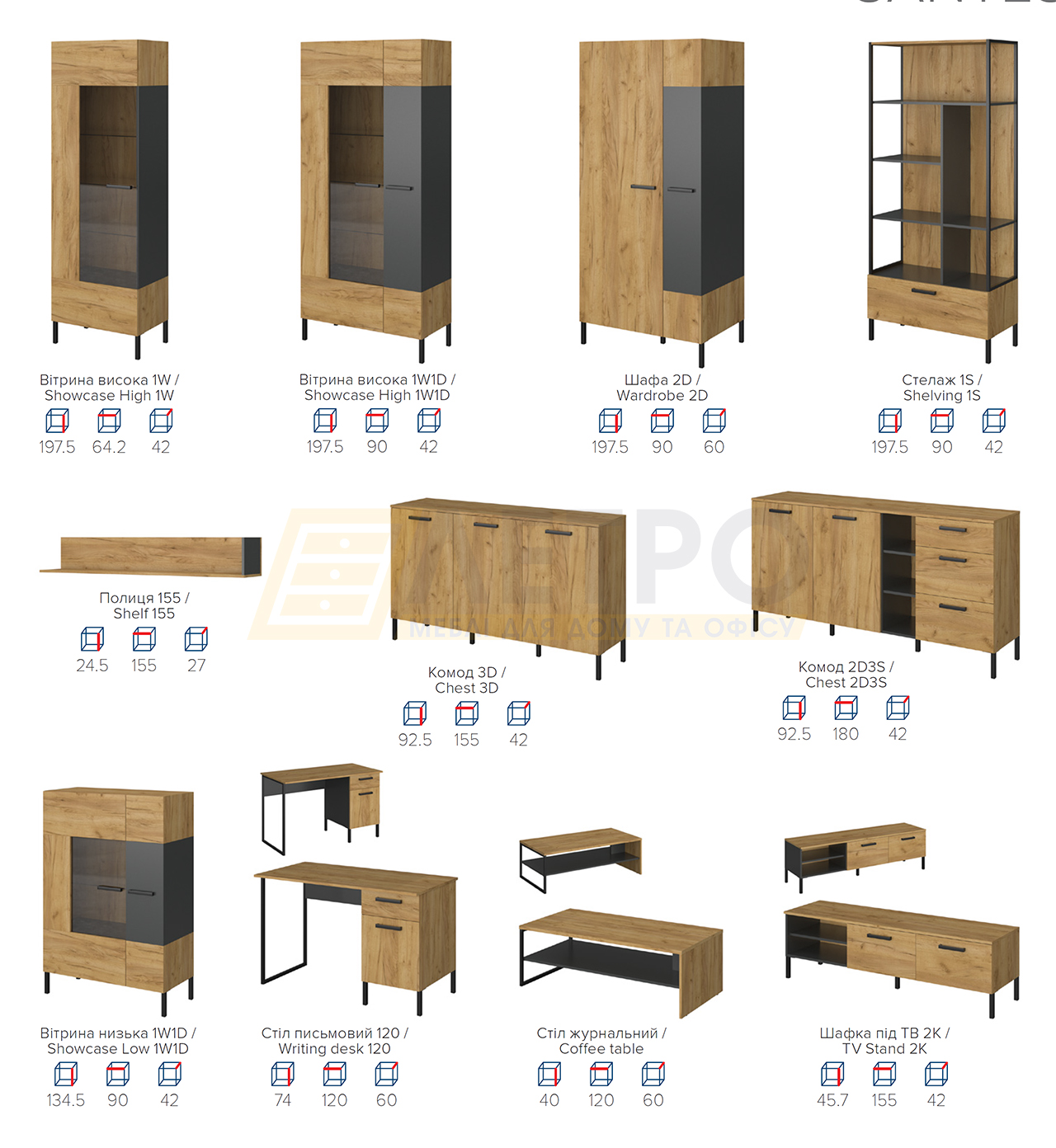 Стелаж Santes є частиною модульної вітальні Santes, що дає змогу поєднувати його з іншими елементами колекції та створювати гармонійний простір у єдиному стилі.