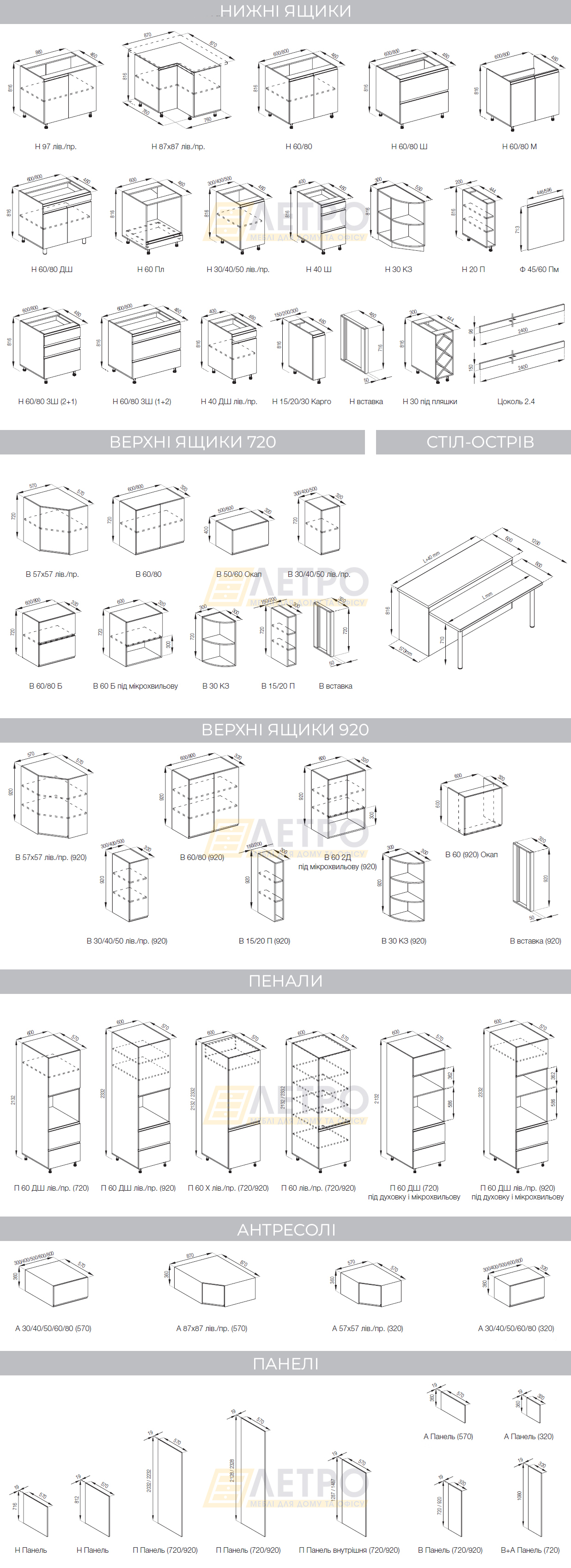 - Для приблизного прорахунку вашої кухні - помножте потрібний вам метраж (вашої кухні) на ціну за 1 метр.
