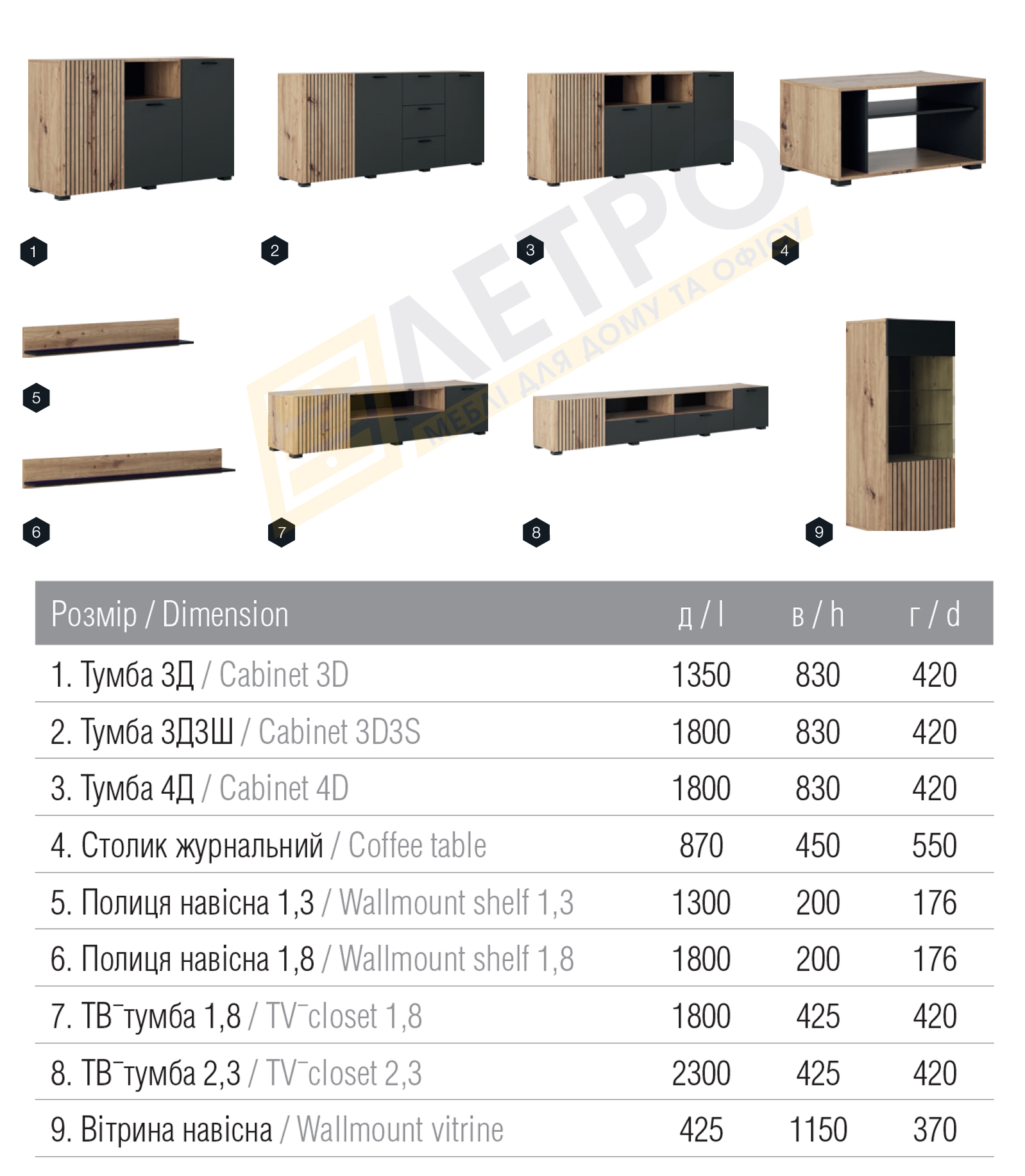 Всі елементи модульної вітальні Зара: