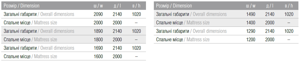 | Габаритні розміри ліжка | |