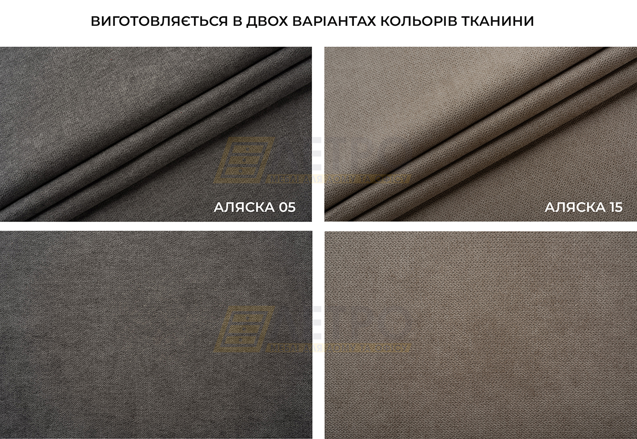 - Оббивка - велюр (сірий Аляска 05 або коричневий Аляска 15).