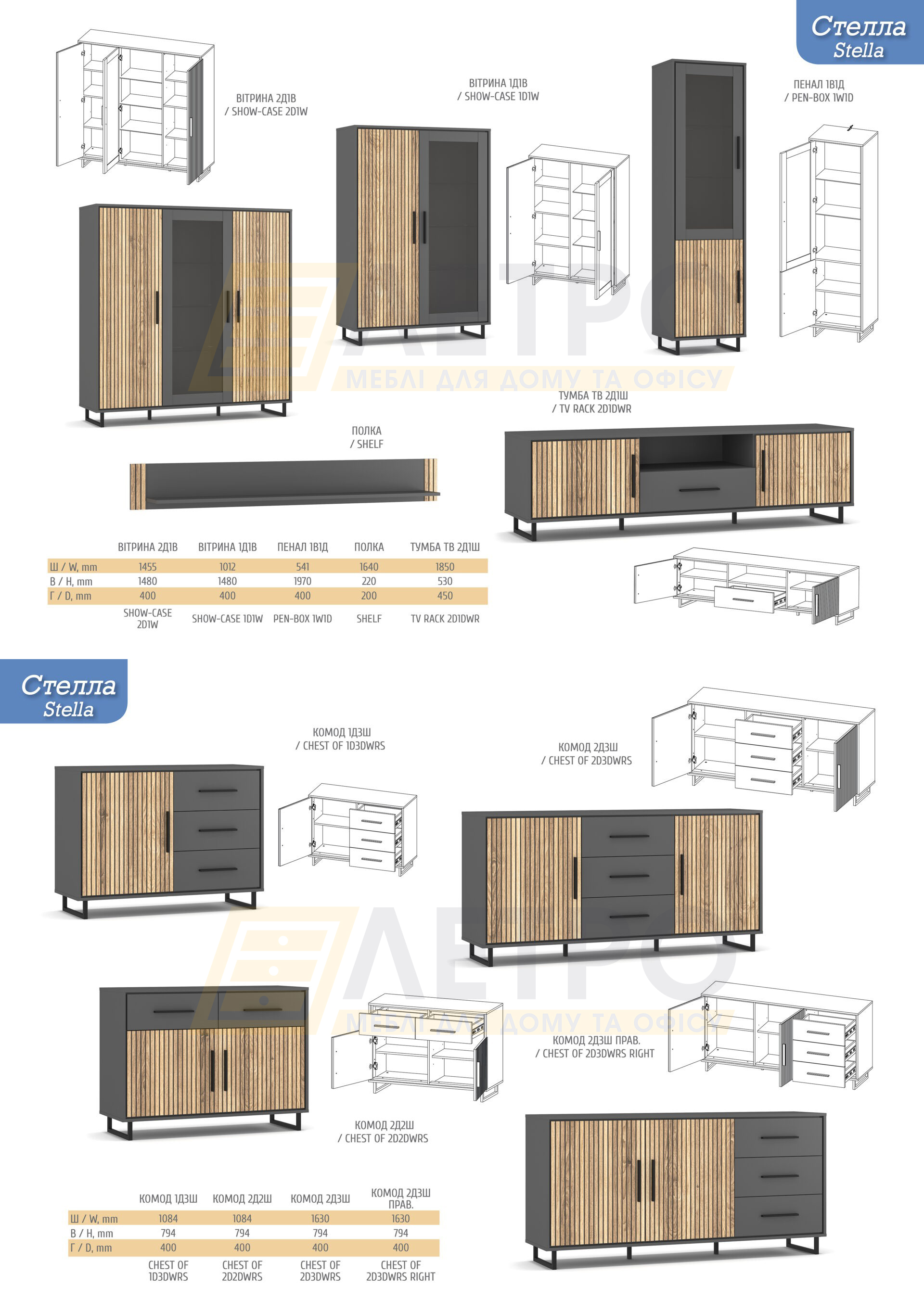 Виготовляється з ламінованого ДСП класу Е1, безпечного для здоров'я і простого в догляді. Є частиною модульної системи Стелла, що дає можливість підібрати інші елементи колекції і створити гармонійний і функціональний простір з урахуванням ваших потреб.