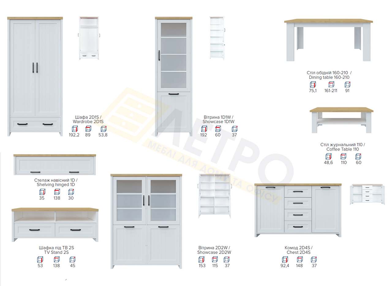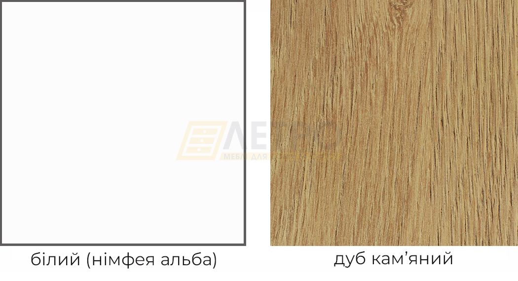 | Колір (відтінок) меблів | Дуб кам'яний, Білий, Німфеа альба |
