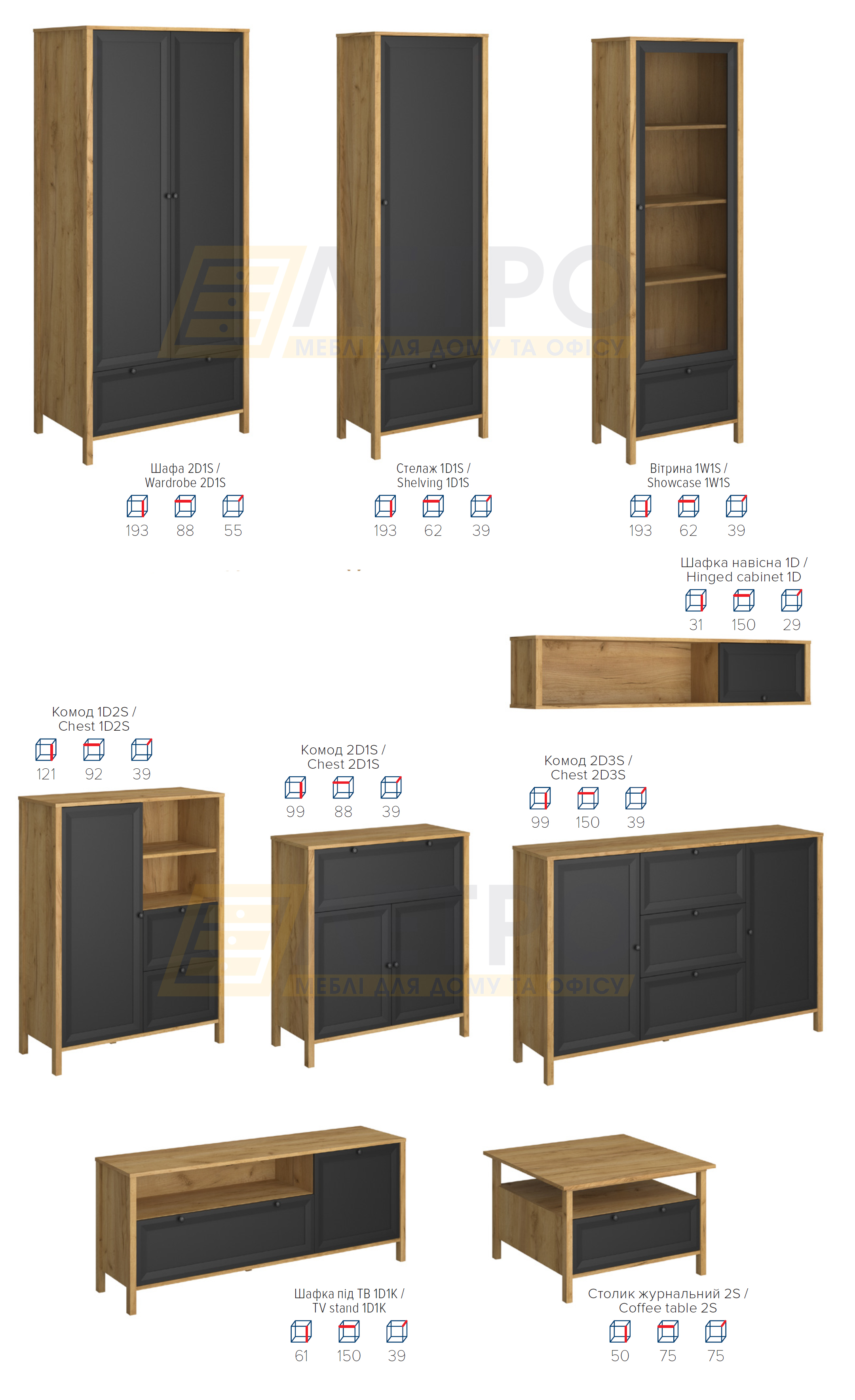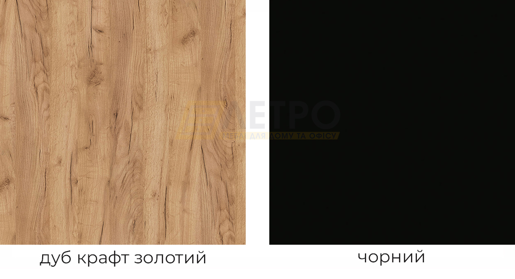 | Колір (відтінок) меблів | Дуб крафт золотий, Чорний |