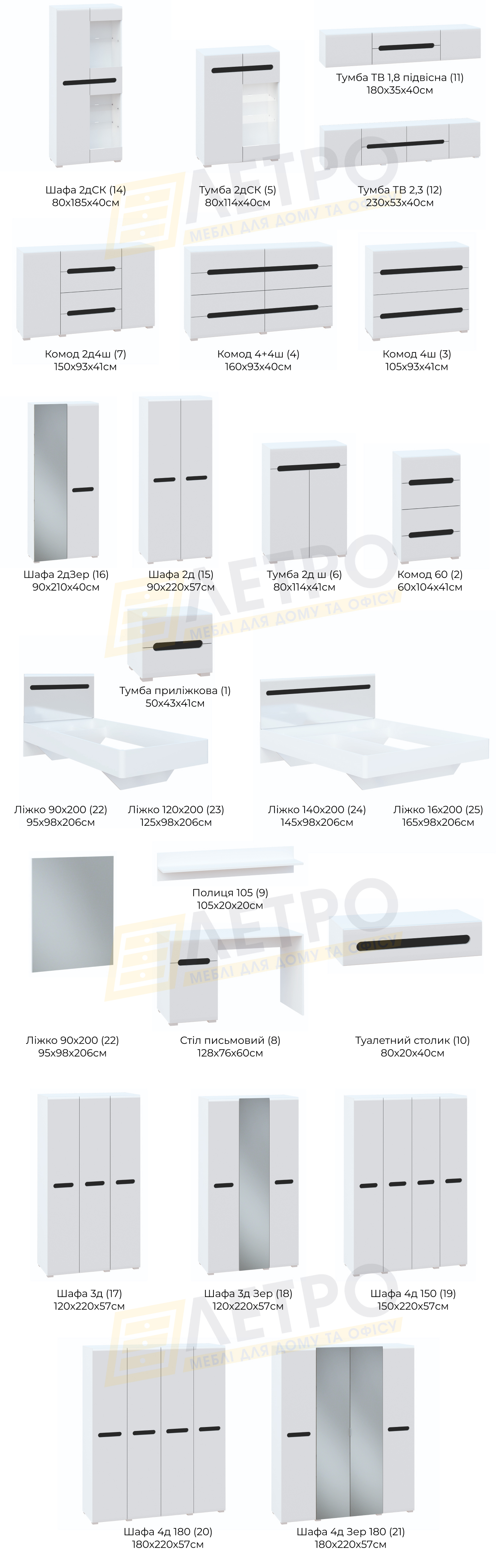 | Колір (відтінок) меблів | Білий, Чорний |