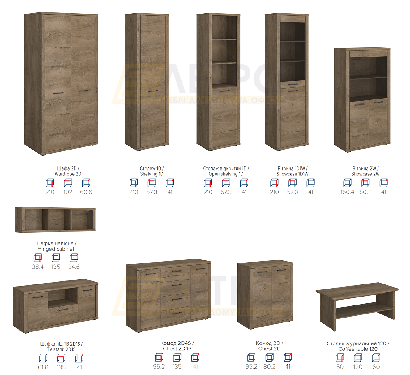 Усі елементи модульної вітальні Cordan VMV Holding: