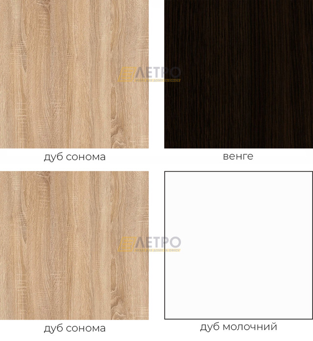 | Колір (відтінок) меблів | Венге, Дуб сонома + білий, Дуб сонома, Дуб сонома + венге, Білий |
